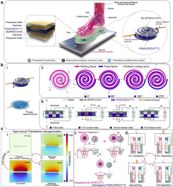 魏取福教授&吕鹏飞研究员团队在Advanced Fiber Materials上发表了题为“Therapeutic Smart Inside Technology with Archimedean Algorithmic Spiral Triboelectric Nanogenerator Based Power System and Sensors”的研究成果,采用“第一性原理指导”的高效电源,开发出柔性便携的多功能智能鞋垫。Alfred Mensah博士为本文的第一作者,漫画柜