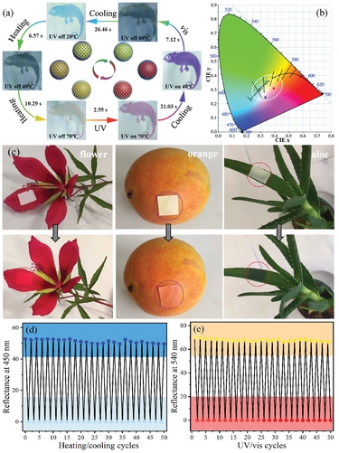 将微胶囊涂覆到织物表面,在不同环境条件下,织物上的图案能够快速响应并发生颜色变化,与周围环境实现高度融合,展现出卓越的伪装效果。经过50次加热/冷却和光照/黑暗循环后,织物的变色性能依然稳定,颜色变化的重复性良好,表明该涂层织物具有出色的耐疲劳性。