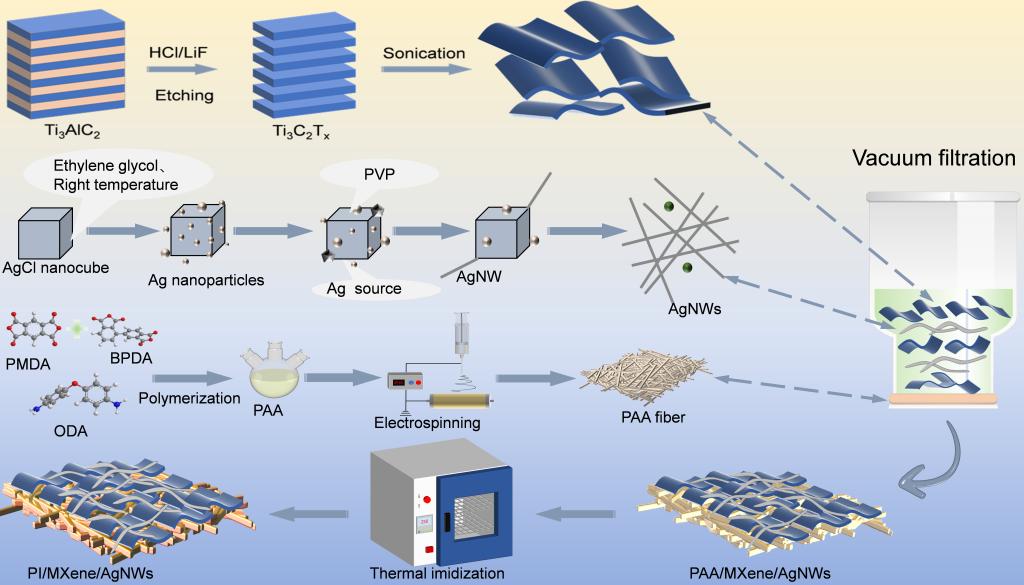 图1 PI/MXene/AgNWs复合膜的制备流程图