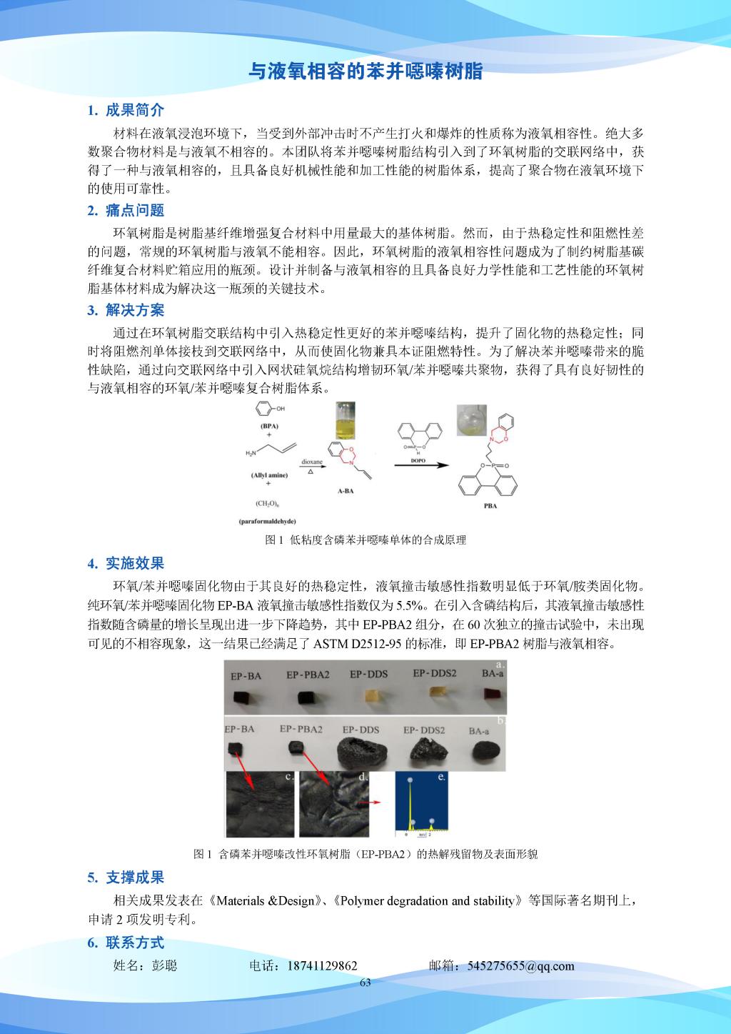 科研成果-与液氧相容的苯并噁嗪树脂