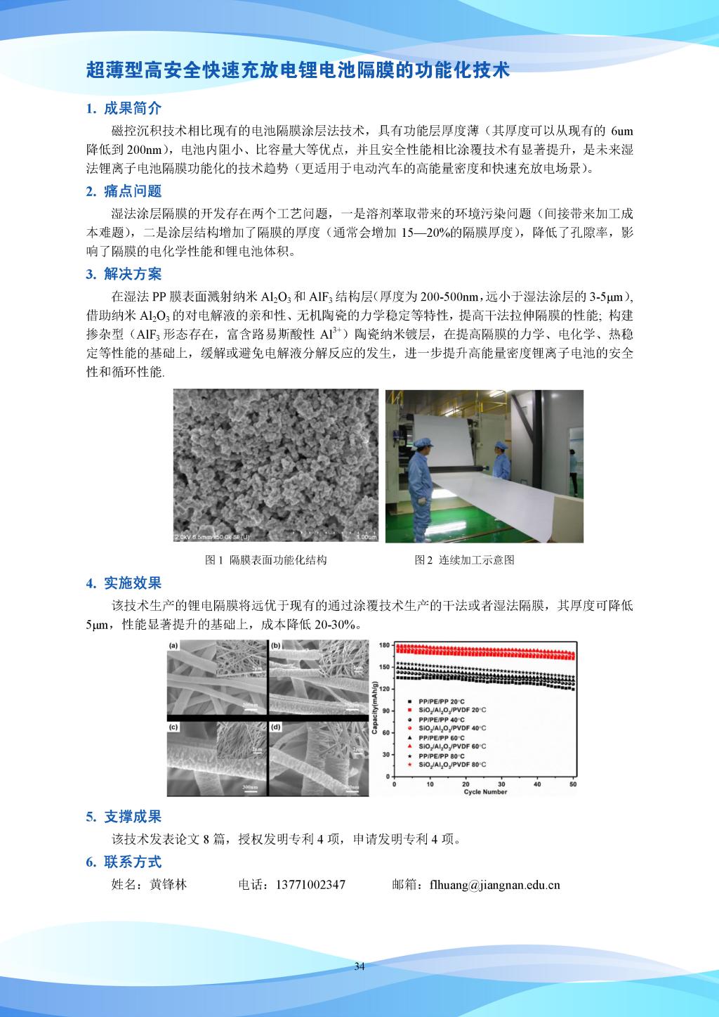 科研成果-超薄型高安全快速充放电锂电池隔膜的功能化技术