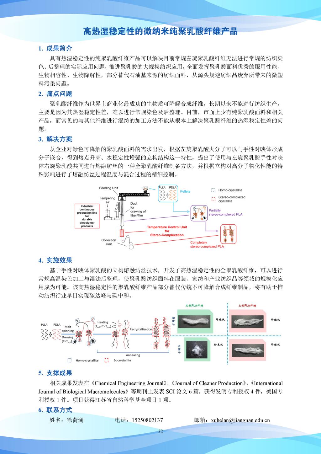 科研成果-高热湿稳定性的微纳米纯聚乳酸纤维产品
