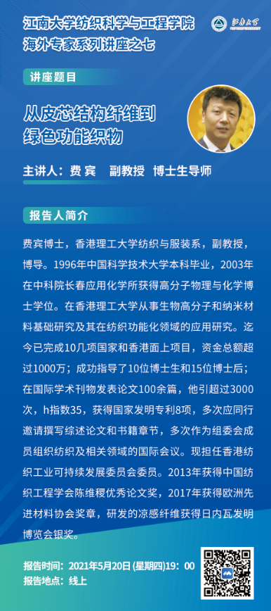 讲座题目:从皮芯结构纤维到绿色功能织物