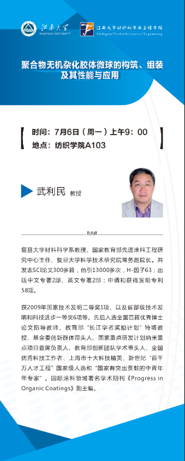 7月6日学术报告:聚合物无机杂化胶体微球的构筑、组装及其性能与应用