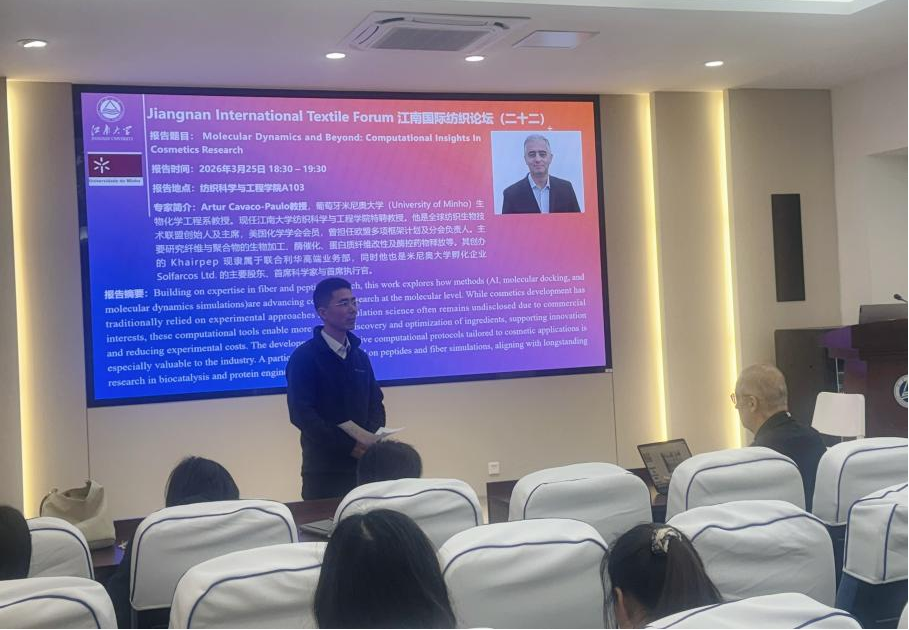 特聘教授Artur Cavaco-Paulo受邀作题为“Molecular Dynamics and Beyond: Computational Insights in Cosmetics Research”的学术报告。本场讲座由戴磊教授主持,吸引了众多师生到场聆听,现场学术氛围浓厚。