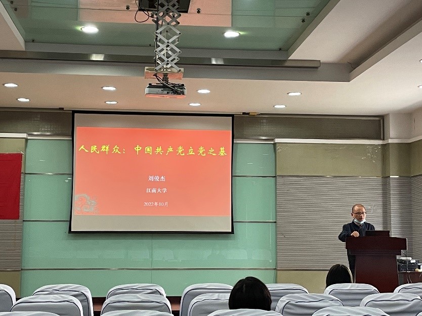 本次培训共开展两场线下讲座。第一场主题为《人民群众:中国共产党立党之基》,由马克思主义学院刘俊杰老师主讲。人民是中国共产党执政的最大底气,是我国的坚实根基,是强党兴国的根本所在。中国共产党来自于人民,为人民而生,因人民而兴,必须始终与人民心心相印、与人民同甘共苦、与人民团结奋斗。刘俊杰的讲解让学员对中国共产党的根本政治立场有了更加深刻的认识。