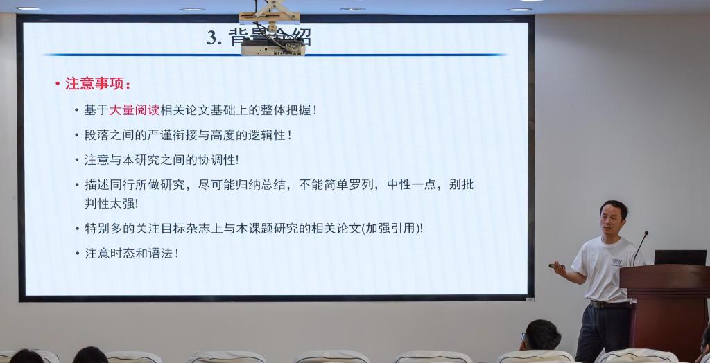 4月18日下午,经论讲堂科研进阶计划系列讲座《研究性论文写作指导》在学院A103会议室顺利举办。吕鹏飞研究员和2020级王成成博士受邀主讲,百余名硕博研究生报名参加。讲座由研究生会张欣芮同学主持。