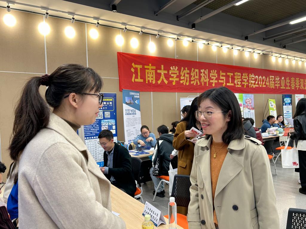 本次招聘会共有来自全国各地的82家企事业单位参会,其中包括国泰华盛、无锡一棉、吉润国际等校友及校企合作单位,江苏大生、苏美达纺织、杭州瑞江化工等行业龙头企业,浙江彩蝶、日华化学、海澜集团等重点产业相关企业。参会单位涵盖纺织、染整、面料、服装、纤维、机械、家纺、造纸、材料等多个领域,共为毕业生提供就业岗位千余个。