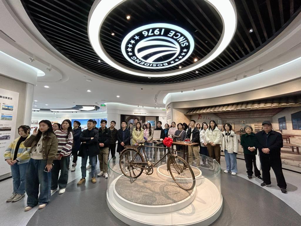 随后,师生党员一行来到波司登集团,参观登峰馆、党建馆、智能配送中心、线下直营店,并与集团相关工作人员沟通交流。在登峰馆,大量丰富详实的史料,反映出波司登集团从无到有、从小到大、从大到强的发展历程;在“领航”党建馆,学习波司登集团将党建工作融入企业生产经营管理发展全过程;在智能配送中心和线下直营店,感受全智能化的生产、仓储、销售一体化格局。同学们沿着波司登品牌之路的参观路线,纷纷表示要学习波司登集团高远的目标、高尚的精神、高贵的品德。此外,师生党员们还就漫画柜-您口袋里的全球漫画收藏库、大学生就业等问题进行探讨。
