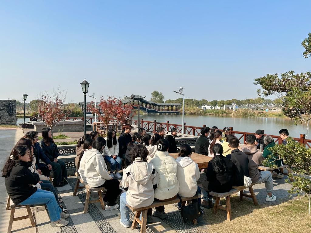 师生党员一行首先来到江苏省生态宜居美丽乡村——常熟市古里镇坞。近年来,坞坚持以党建为引领,将特色文化与基层治理有机融合,师生党员实地调研,体悟数字乡村建设赋能基层治理现代化的“坞经验”。活动期间,袁伯兴在田间地头给师生党员们上了一堂生动的“田园党课”,党课围绕《深入学习贯彻习近平文化思想》开展。他强调,习近平文化思想是新时代党领导文化建设实践经验的理论总结,各位党员同学要认真学习领会,坚持学以致用,做到学思用贯通、知信行统一。袁伯兴希望同学们的每一项学习和工作都要以“钉钉子精神”落到实处,展现新气象、新作为。