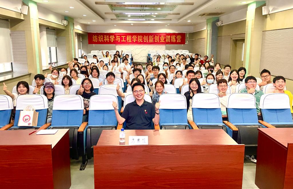 副院长马丕波进行了专业学术讲座。马丕波教授以“纺织材料的最新跨界应用”为主题,结合个人求学经历,生动诙谐地向同学们介绍了纺织工程和轻化工程专业、中国纺织工业的现状以及学院在研的各类纺织结构织物。他指出,纺织行业已不是传统的纺纱织布,而是在与多学科交叉融合的过程中,朝着“面向世界科技前沿、面向经济主战场、面向国家重大需求、面向人民生命健康”的方向发展。除此之外,他还向学生们介绍了几个学生培养案例,激励着同学们向更高更远的方向奋进,纺织未来有无限可能。