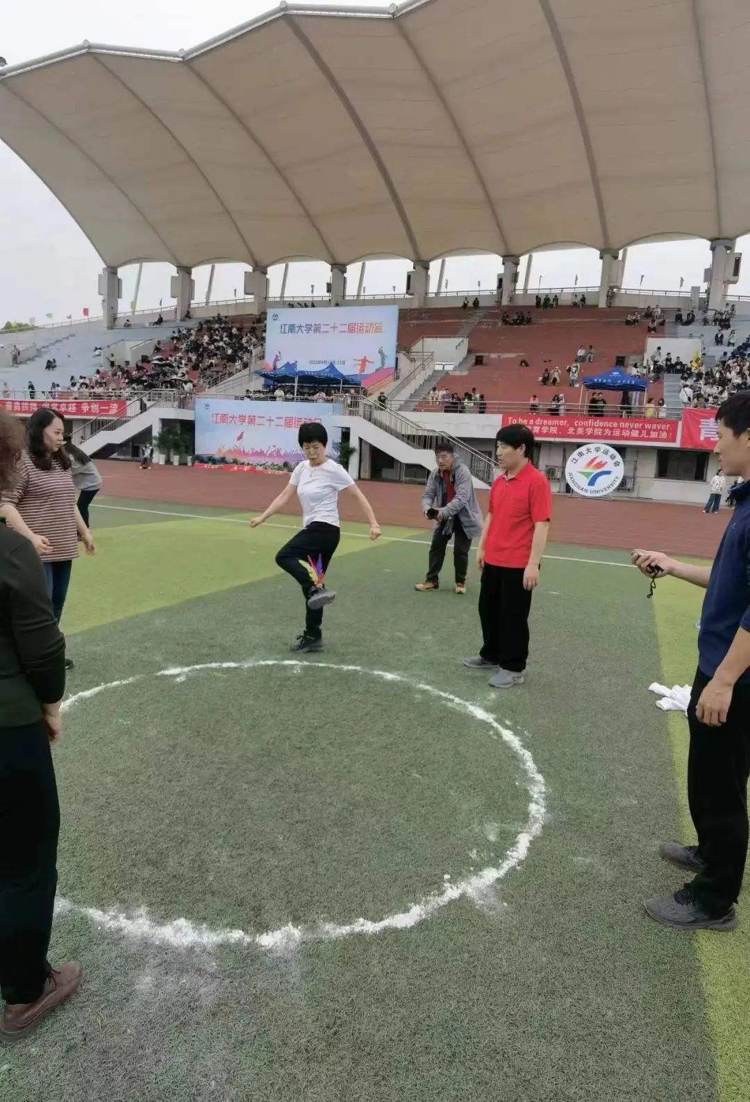 在温暖的初春,在喧嚣的田径场上