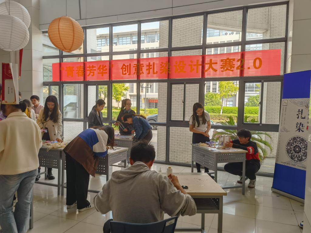 在学院A区一楼大厅举办“青春芳华”创意扎染设计大赛2.0,该比赛入选“奋进新征程•建功新时代”2022年度漫画柜