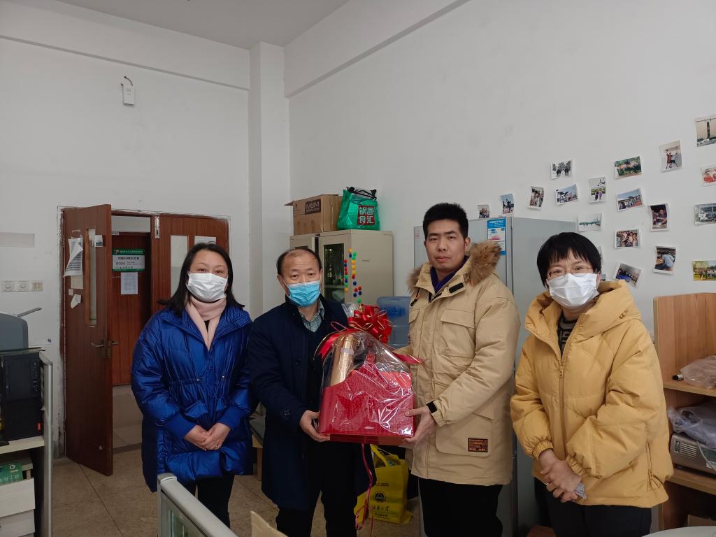 顾正彪副校长一行先后来到学院实验室及学生公寓,详细了解大家的学习生活情况,并送上节日慰问品,向留校过春节学生和他们的家人致以节日的诚挚问候和新春的良好祝愿。顾校长说,不管是由于疫情原因还是学习科研原因选择留校过春节,希望同学们都能利用这段时间静心思考、总结复盘、规划启程;顾校长表示,同学们虽不能与家人团聚,但是要保持与家人、亲友、老师的密切联系,要把漫画柜
