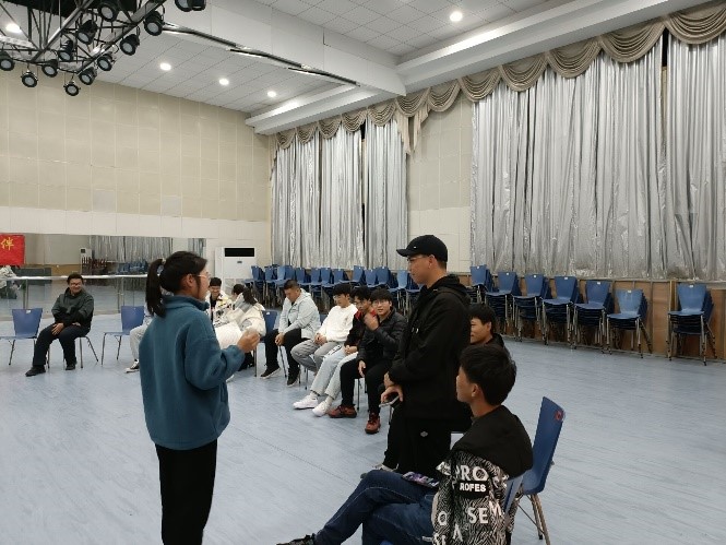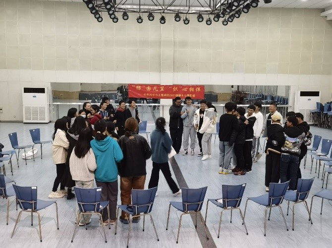 活动伊始,同学们在张瑾的带领下完成了“击鼓传花”、“桃花朵朵开” 、“逛三园”等一系列有趣的破冰热身游戏,活动气氛渐渐热烈起来,同学们之间的距离逐渐拉近,在游戏过程中逐渐融入了新的集体,并感受到了团队带来的欢乐和力量。
