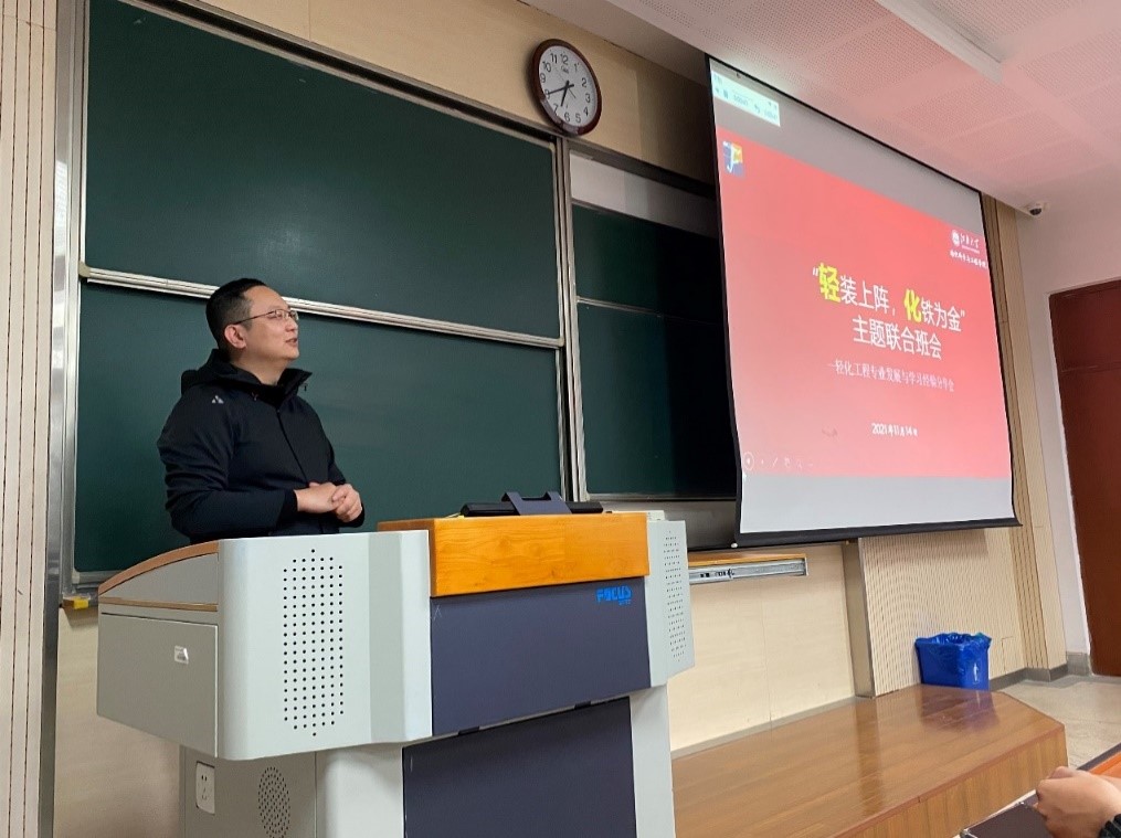 教工第一党支部举行轻化2003班与2103班联合班会暨“轻”装上阵,“化”铁为金主题优秀生分享会。