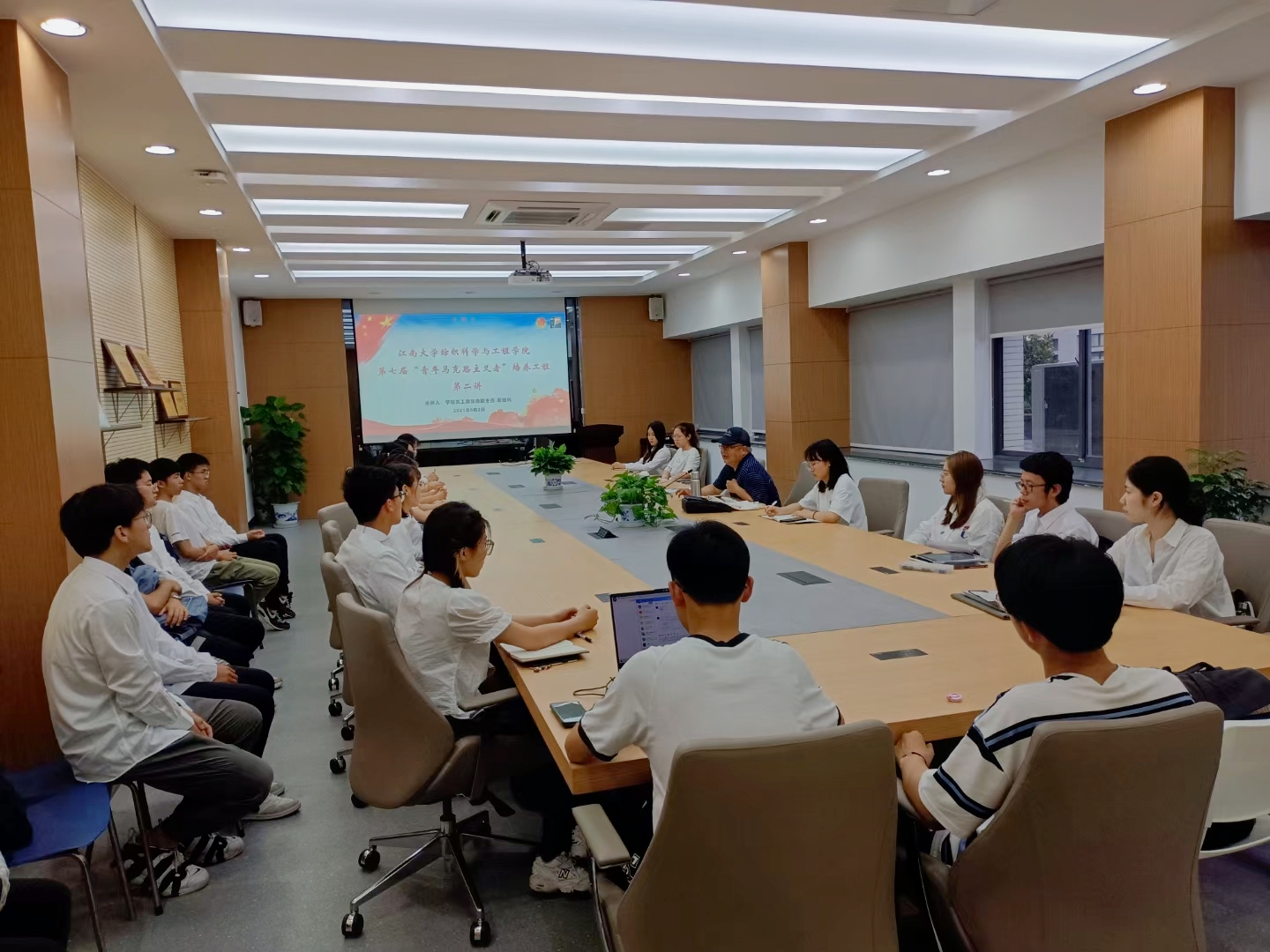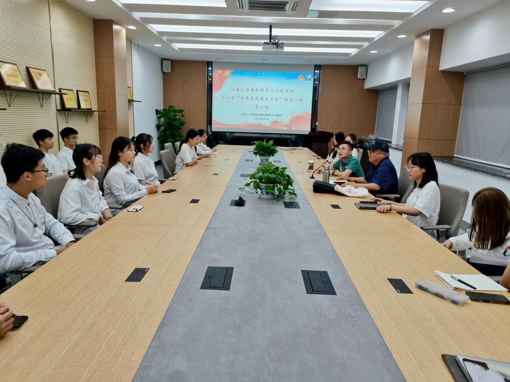 第七届“青马工程”第二讲在纺院A306举行。活动邀请学院关工委常务副主任、特邀党建组织员袁伯兴主讲,本届“青马工程”全体学员参加。活动由学院分团委书记陈裕主持。