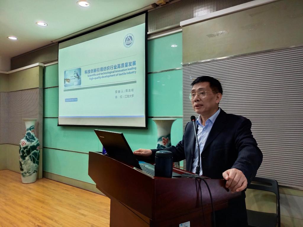 蒋老师的报告围绕“十四五”纺织产业发展方向,重点探讨了纺织纤维新材料、纺织智能制造与装备、纺织绿色加工、先进纺织制品这四个方面的科技创新。报告介绍了再生纤维、高强碳纤维等新型纤维材料,描述了基于互联网与信息技术的自动化纺织智能工厂,详细介绍了人工智能在纺织生产线上从纺纱到织造,从设计到管理的应用。同时,蒋老师从纤维生产到纱线染色再到纺织废水处理,详细阐述了现代纺织业实践纺织品生态加工的绿色理念,实现加工过程的低能耗、低排放、低污染、高效率。最后蒋老师还介绍了高科技纺织品在服饰、家纺与产业方向的应用。报告以科技创新引领纺织高质量发展,形成跨领域合作的科技创新体系,带动纺织产业高端化、现代化,对纺织行业的转型升级具有重要意义。