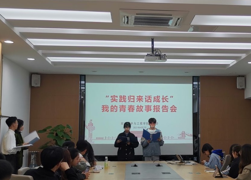 在学院A306会议室举办“实践归来话成长”我的青春故事报告会。学院分团委书记陈裕、2020级班长团支书、寒假社会实践优秀团队全体成员参加本次活动,报告会由学生会团通社部长陈琪主持。
