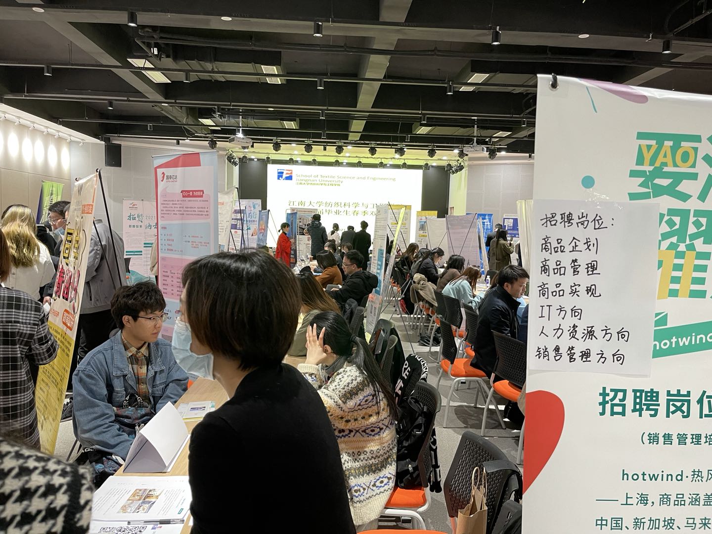 学院2021届毕业生共314人,其中本科毕业生218人,研究生毕业生106人。本次招聘会共有来自省内外的46家单位参会,包括波司登国际服饰(中国)有限公司、无锡市吉润国际贸易有限公司、昆山热风服饰商贸有限公司、常州纺织服装职业技术学院等国内知名企事业单位,共为毕业生提供就业岗位300余个。