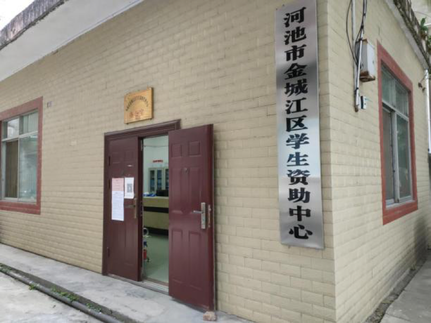 周利群同学到河池市金城江区学生资助中心帮忙处理事务