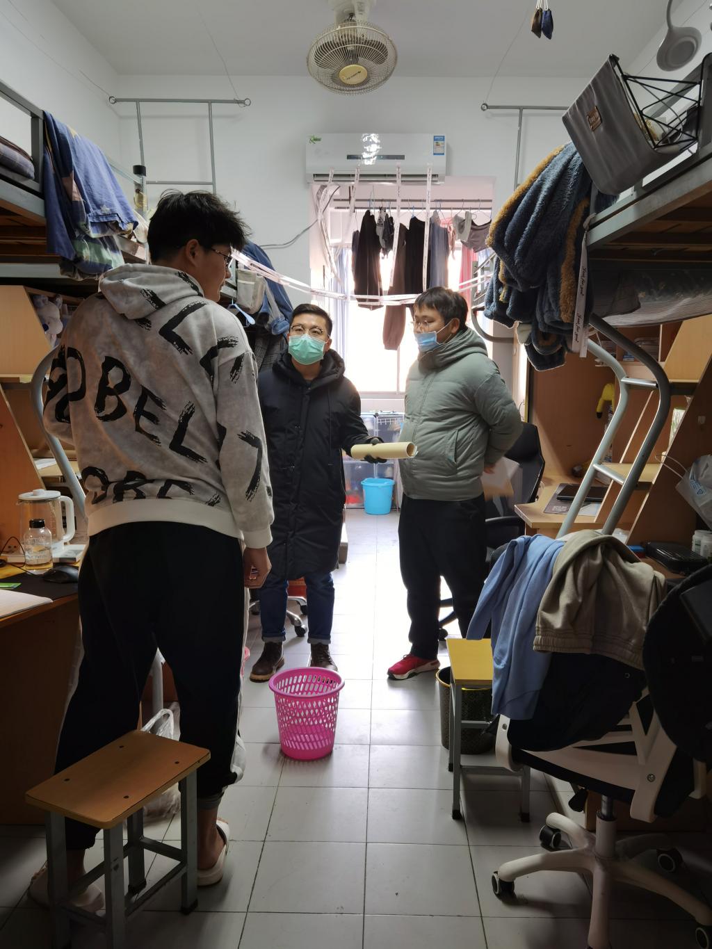 本次检查工作的重点是宿舍内违章电器、用电安全、宿舍卫生等方面的情况。检查小组逐楼逐层走进宿舍,认真细致地检查各宿舍的安全隐患,将存在问题的宿舍进行记录整理,现场督促相关宿舍进行限期整改。老师们还仔细询问了同学们近期的期末复习情况,安抚大家的考试焦虑情绪,对留校进行科研工作的研究生表示慰问与鼓励。检查过程中,老师们再三强调宿舍安全的重要性,提醒同学们树立安全意识,确保冬季用电安全,拒绝使用违章电器,保持宿舍良好卫生,养成积极的生活习惯和作风。同时也提醒各位同学,寒假假期即将来临,离校时定要整理好个人用品、清扫宿舍、关好门窗、切断电源,外出时要做好个人防护、减少聚焦,注意财务和人身安全。