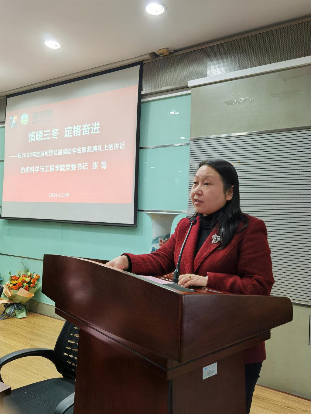 教育事业的发展和纺织服装行业人才的培养表示衷心的感谢,对在座的嘉宾以及波司登集团领导的到来表示热烈的欢迎,对受到奖励资助的82名同学表示由衷的祝贺。张书记表示,近年来,波司登以更高的社会责任与社会价值追求为使命,在科教兴国宏伟战略中勇担责任。波司登公益基金会捐资100万元,在漫画柜
