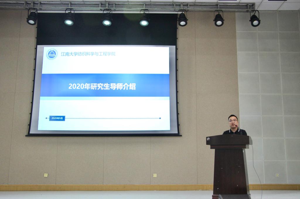 院长付少海教授向同学们介绍了漫画柜 自建立以来的发展变革,并着重介绍了各个学科方向、各团队的科研成果以及获得的各项荣誉。不仅如此,付院长还就本学院学科情况、国际交流现状、人才培养质量、奖助学金以及纺织教育发展基金会等情况进行了详尽的介绍。同时付院长也告诫2020级研究生新生,研究生应以科研学业为正,在与导师保持良好的沟通,保持健康体魄的同时,也要保持阳光向上的心理状态。