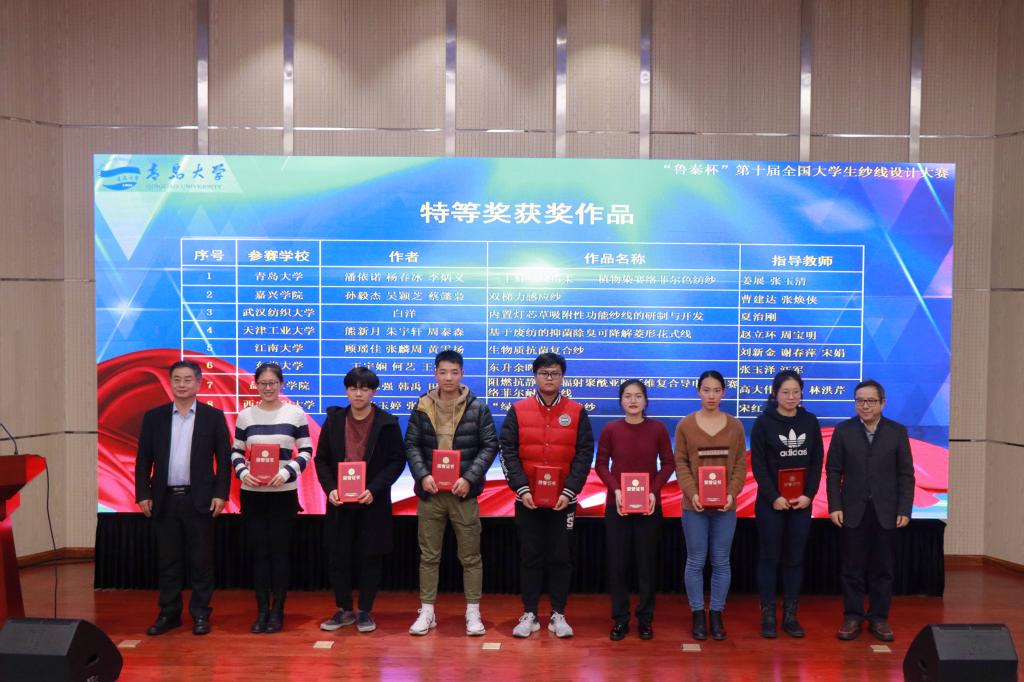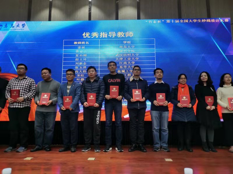 1216日,第十届全国大学生纱线设计大赛颁奖典礼在青岛大学隆重举行。纺织服装学院师生在此次大赛中表现突出,斩获特等奖1项、三等奖1项、优秀指导教师奖1项。