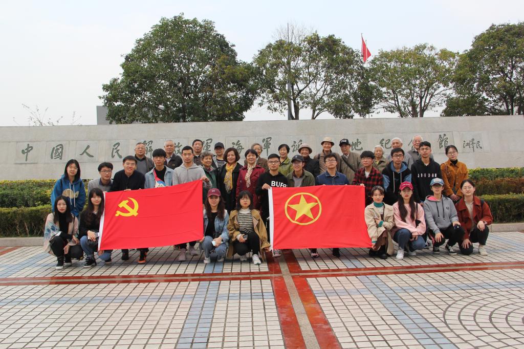 离退休第六党支部书记王国梁、纺织服装学院分团委副书记叶青全程组织参与,在两个多小时的行程中老少携手、互动交流,老党员一首首红色诗词朗诵,是那一代人的初心难忘,青年团员阵阵团歌嘹亮,展现这一代人的不忘初心。