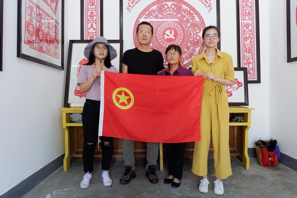 团队成员与剪纸艺人合影
