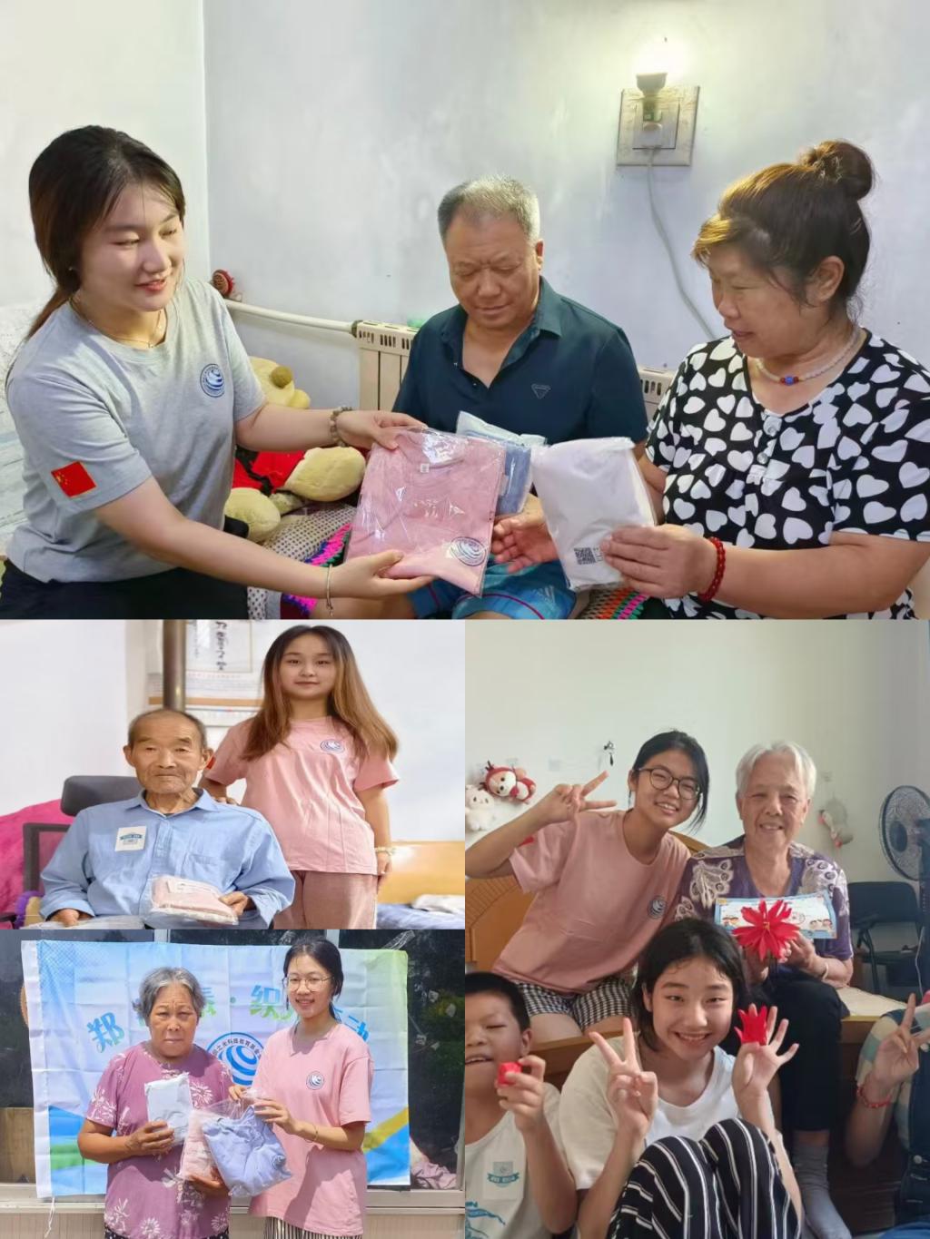 以秦孝天、王佳媛、胡闻秋、王诗琪等同学为代表的实践成员联络家乡所在地的居委会和社区为身边的“空巢老人”开展“一对一”关爱服务。实践成员们上门为老人送去“织光行动”爱心包裹,陪老人聊天散步,与老年人建立情感联结的桥梁。