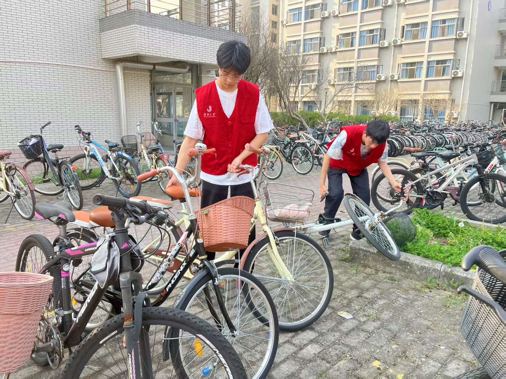 志愿者整理自行车