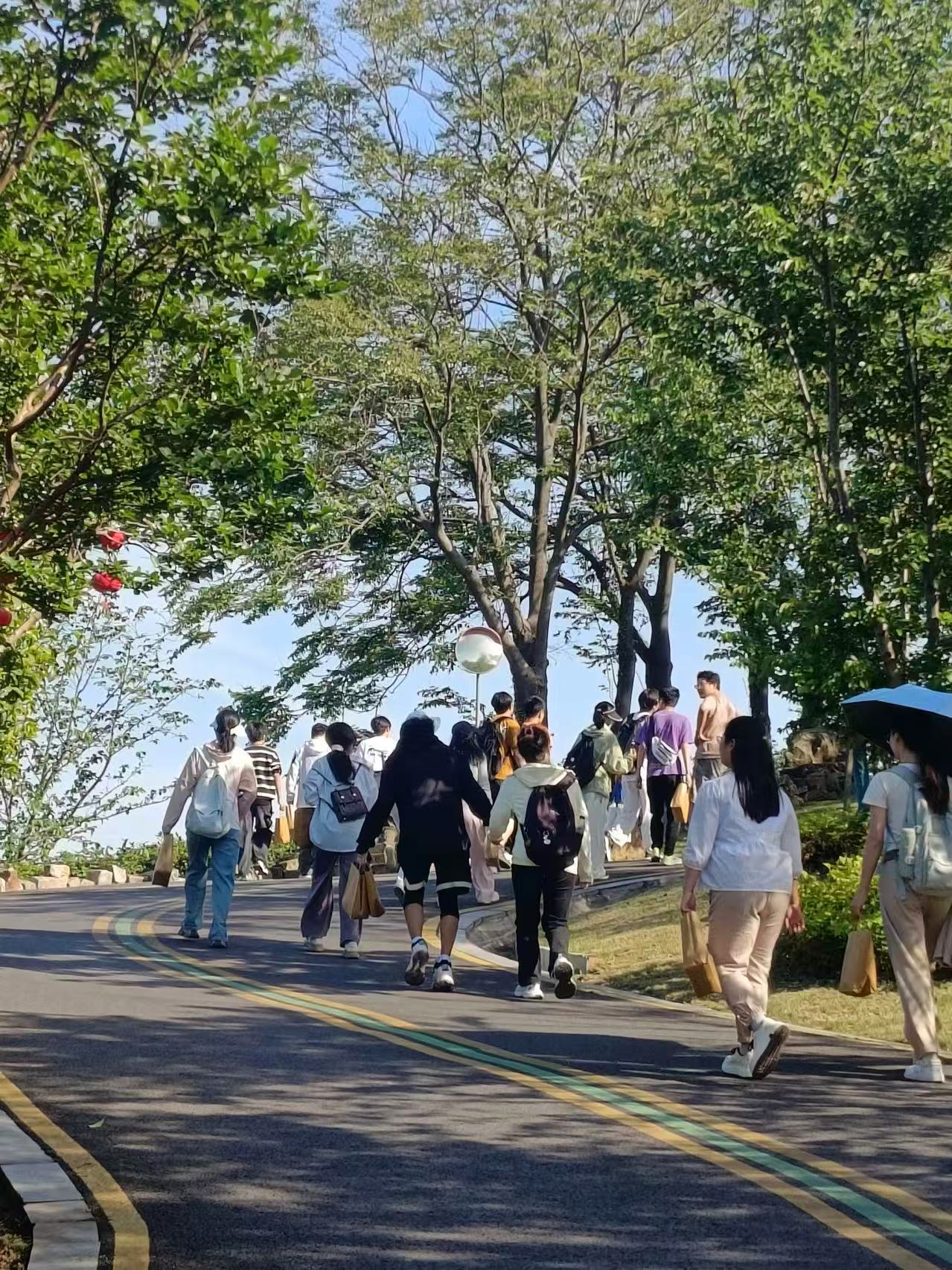 登山环节中,同学们斗志满满,以“不放弃、共前进”为口号,相互鼓励、携手攀登,沿着蜿蜒的山路向山顶出发,用脚步丈量坚持的力量,让青春在互助前行中淬炼成钢。