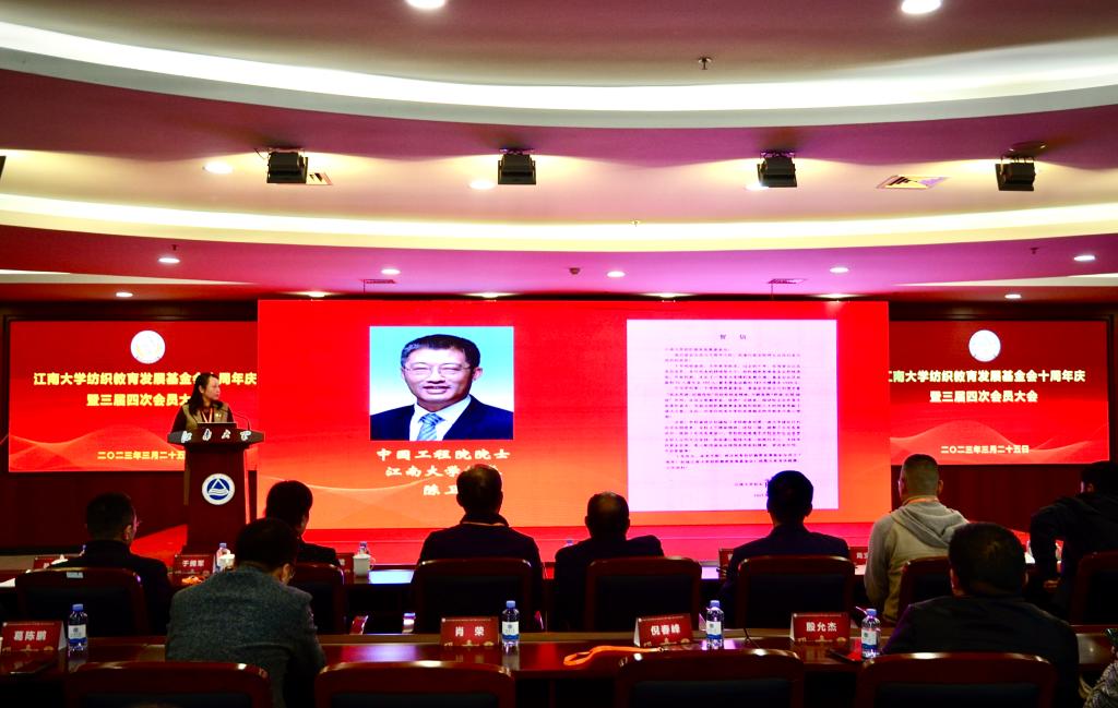 纺织教育发展基金会十周年庆暨三届四次会员大会在图书馆五楼报告厅隆重召开。来自全国各地300余名会员、校友汇聚一堂,共商育才大计。