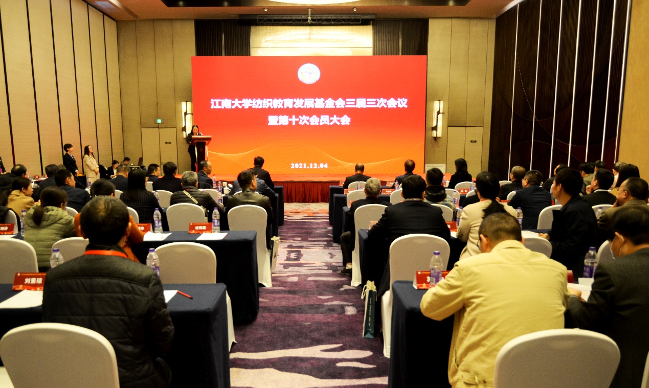 纺织教育发展基金会奖学奖教实施条例》,对2021年度表现突出的4位教师、35位学生进行表彰和奖励。新会员、杰出会员以及获奖师生代表进行了大会发言。大会还对基金会奖学奖教实施条例修订的情况进行了说明与表决。