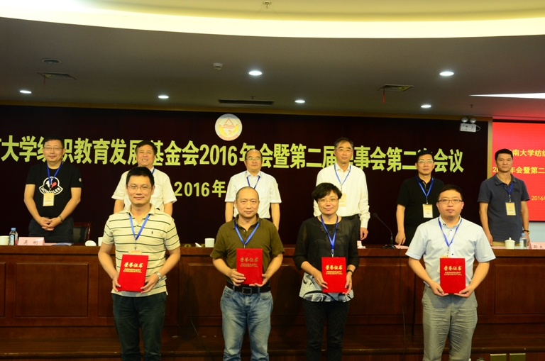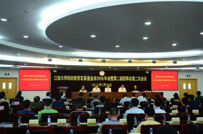 纺织教育发展基金会2016年会暨第二届理事会第二次会议在学校图书馆五楼隆重召开,会议由江苏汇鸿股份有限公司原董事长、基金会副理事长蒋金华先生主持。理事长高卫东、副理事长香港肇丰投资有限公司董事长高春和,无锡鼎佳纺织品有限公司董事长吴刚,苏州安派精密电子有限公司总经理邵太春,漫画柜