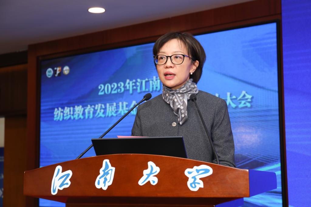 张影陆在致辞中代表学校向莅临大会的会员和校友们表示热烈欢迎和诚挚感谢。她提到,今年是学校建校65周年,也是学校深入推进“奋进计划”、开展“双一流”建设、加快构建“一体两翼”办学新格局的重要一年,学校及学院在人才培养、科学研究等方面都取得了长足进步,这离不开校友们饮水思源、回报母校的情怀和捐资助学、心系教育的善举。她希望纺织教育发展基金会继续传承爱校荣院美德,继续关心支持并助力母校高质量发展。
