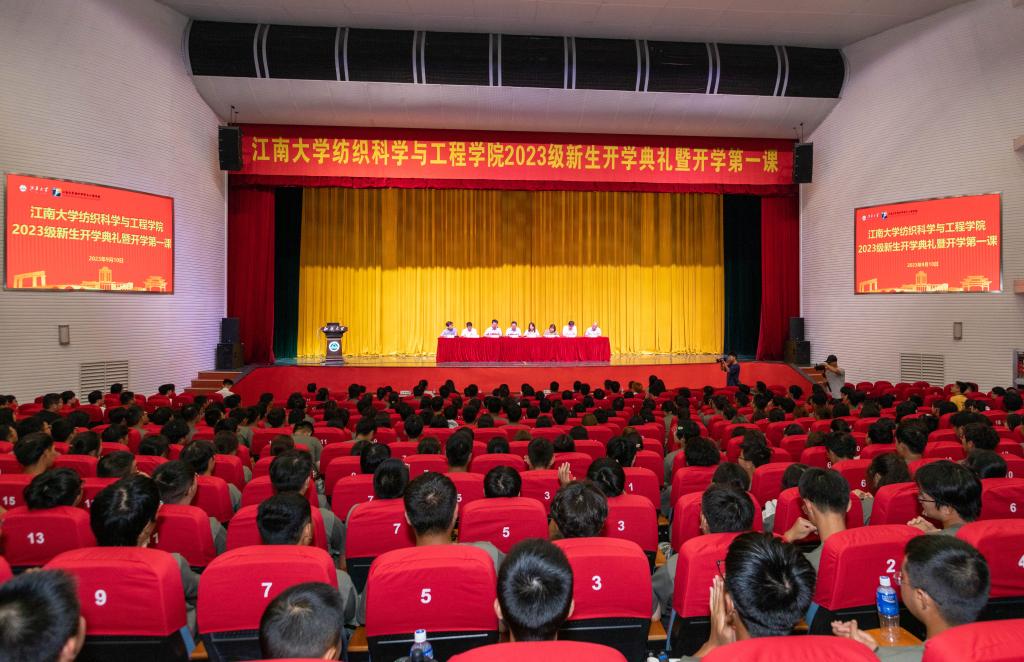 最后,付少海院长为2023级新生讲授“开学第一课”,他围绕纺织科学与工程学科建设,从学科发展现状、行业发展前景、学科建设思考等方面进行深入解读,带领新生了解自己所学专业,激励新生要坚定理想信念、练就过硬本领、投身纺织强国伟业。此外,他向大家提出“五牢记、五不要”的真挚建议,希望同学们凡事当三思而后行,真正去做一名有德、有才、有理想、有追求的新青年。