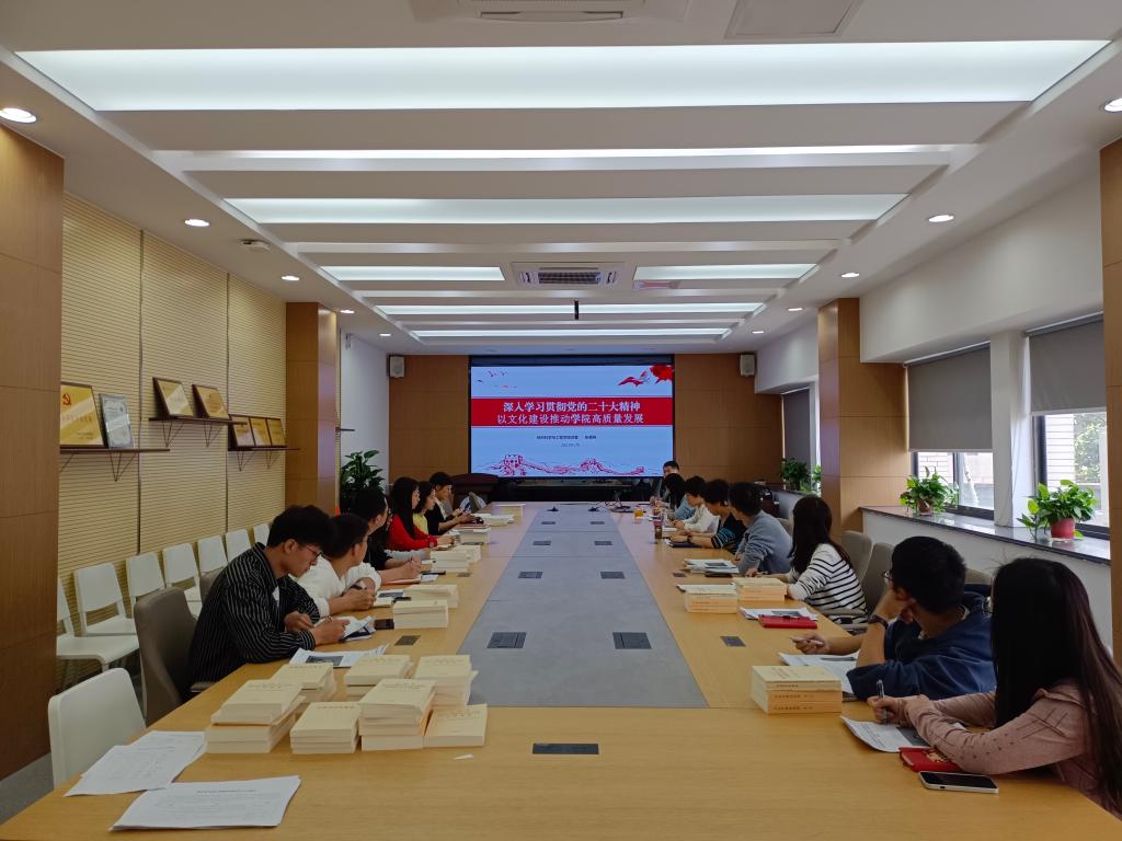 张菁燕从3个板块,15个方面带领大家系统学习了二十大报告原文内容,她指出,党的二十大是在全党全国各族人民迈上全面建设社会主义现代化国家新征程、向第二个百年奋斗目标进军的关键时刻召开的一次十分重要的大会,它明确了我们党将继续高举中国特色社会主义伟大旗帜,全面贯彻新时代中国特色社会主义思想,以饱满的精神状态去实现党的宏伟目标。开展此次会议,对于我们进一步理解党的二十大是一次高举旗帜、凝聚力量、团结奋进的大会具有重要意义。结合基层党支部主题教育要点,张书记介绍了《习近平著作选读》、《习近平新时代中国特色社会主义思想专题摘编》等8本原著的内在联系,她强调,全院上下务必要自觉维护党的领导,原原本本学,为奋进新征程,建功新时代贡献自己的力量。就如何以文化建设推动学院高质量发展这一主题,张菁燕指出,学院要通过加强理论武装,练好马克思主义哲学看家本领,做好意识形态工作;加强阵地建设和管理三个措施来传播党的政策主张,助力学院高质量发展。