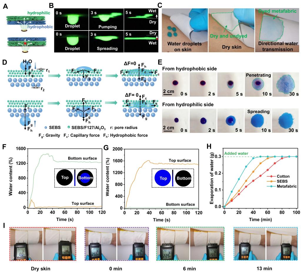 超织物的Janus润湿性和吸湿快干性能