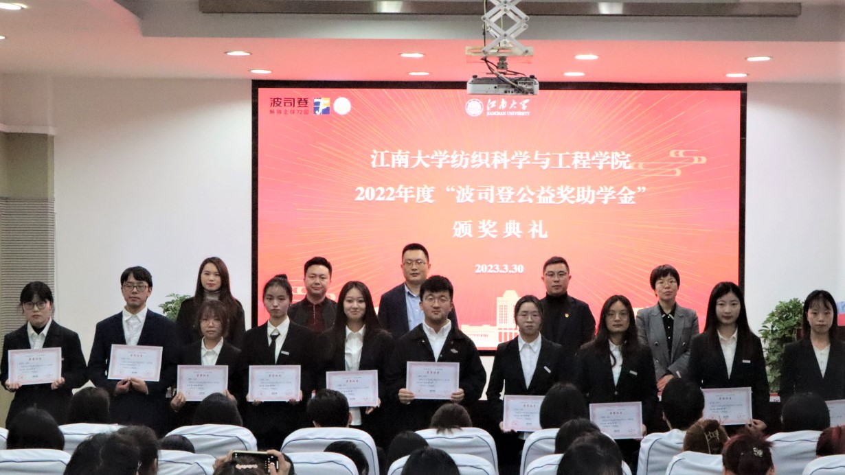 一直以来人才支持与合作的感谢,并期待有更多江大学子加入波司登,为中国纺织行业注入更大的力量。随后,轻化1903班孙熔声、服艺1903班缑钰昇、纺织2003班王凌霄3位同学向设奖单位献花,表达了对波司登集团捐资助学善举的感谢。