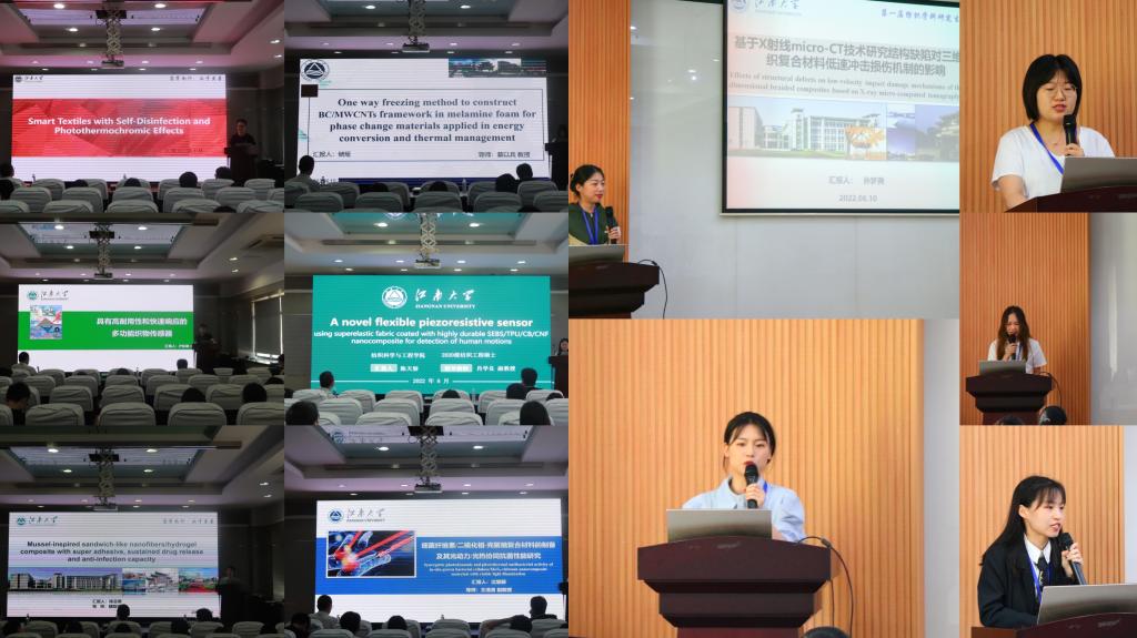 王冬老师应邀作专题报告,喻爽等5位学生代表汇报获奖论文。各专家学者及获奖学生围绕“功能纺织品”和“复合材料”主题,结合各自论文的相关观点热烈讨论,在思维的碰撞中拓展学术视野,提升学术创新力。