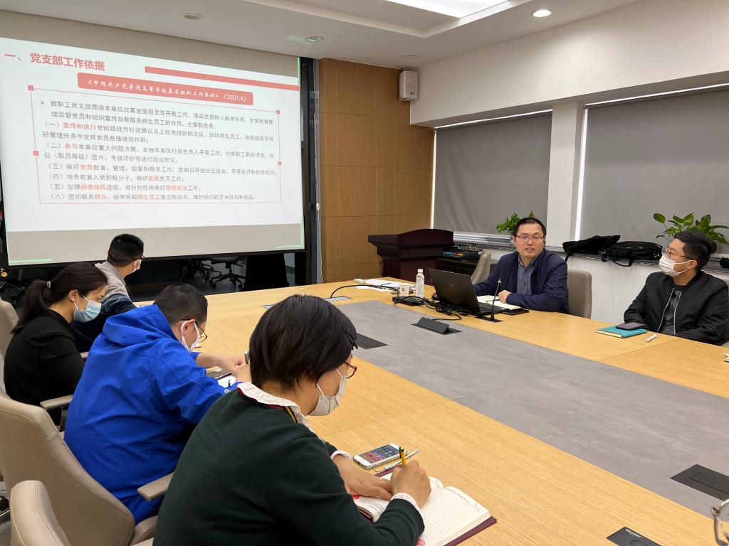 在A306召开支部书记例会暨专题培训会。校党委组织部董小平老师受邀做专题培训,学院党委书记张菁,党委副书记陈艳君、各党支部书记及支委、全体辅导员参加了会议。