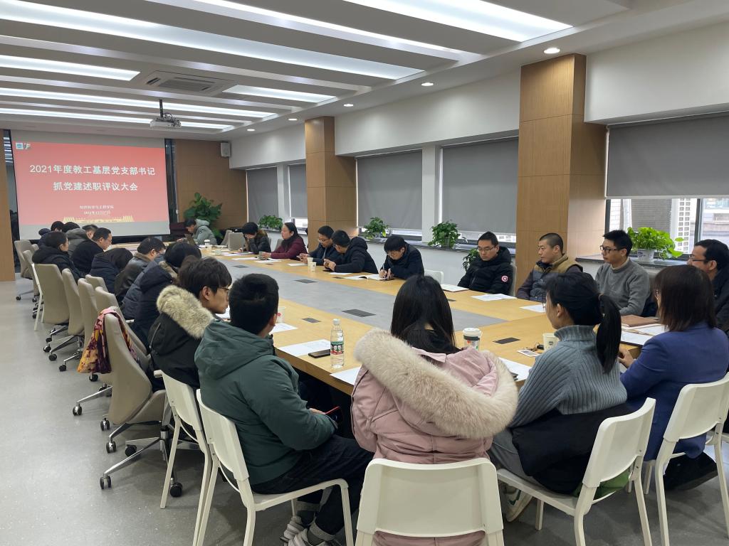 党委“2021年度基层党支部书记抓党建述职评议考核”在A306会议室与A103会议室顺利召开。学院全体党委委员、师生党支部书记和支部委员、辅导员以及党员代表共计80余人参加会议。本次评议考核会由教工支部、学生支部述职评议和征求意见座谈会三部分进行。