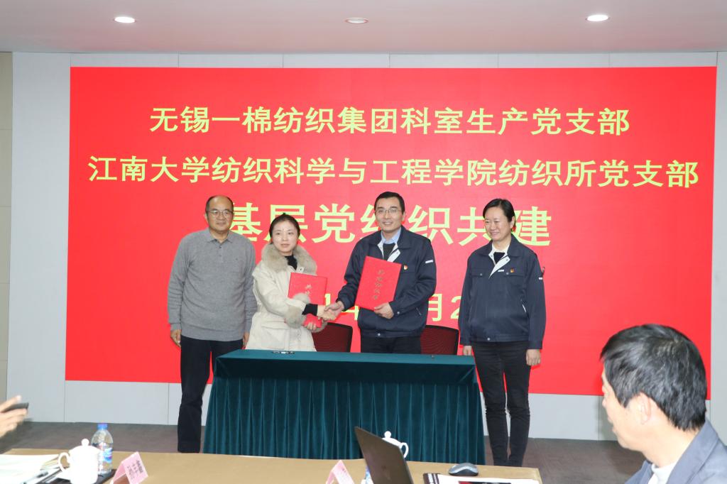 纺织所教师党支部赴无锡一棉,与无锡一棉纺织集团生产党支部举行了党建共建签约仪式。
