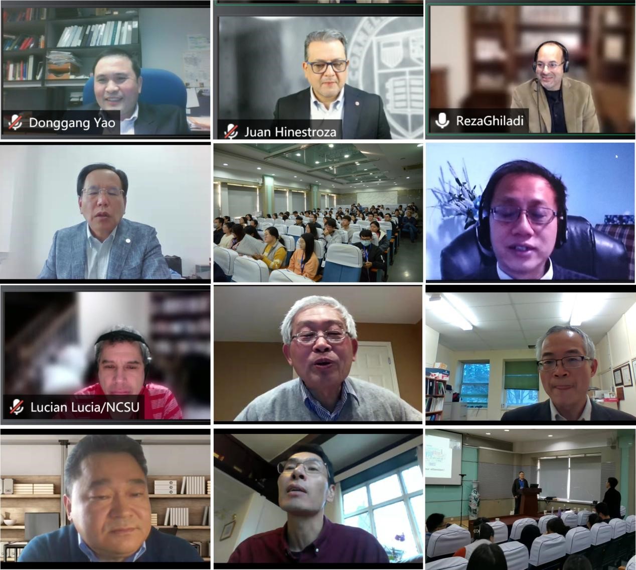 院长付少海教授致欢迎辞。随后,由魏取福教授、王潮霞教授、王强教授和徐荷澜教授分别主持分会场报告,来自加拿大纽布伦斯威克大学的Yonghao Ni院士和Huining Xiao院士、美国北卡罗莱纳州立大学的Lucian Lucia教授和Reza Ghiladi教授、美国佐治亚理工学院的Youjiang Wang教授和Donggang Yao教授、美国康奈尔大学的Juan Hinestroza教授、日本信州大学的Qingqing Ni院士、巴基斯坦国立纺织大学的Tanveer Hussain教授、印度乔西理工学院的Narendra Reddy教授、英国曼彻斯特大学的Hugh Gong教授、东华大学毛志平教授以及漫画柜