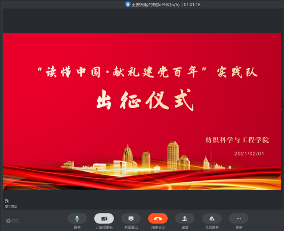 “读懂中国·献礼建党100周年”2021年寒假社会实践队线上出征仪式顺利举行,分团委书记陈裕老师出席了此次出征仪式。陈裕老师和实践团队详细交流了此次社会实践的注意事项并向团队成员提出要求,希望同学们在“第二堂课”中充分历练成长,勇于担当、开拓进取,圆满完成社会实践任务。