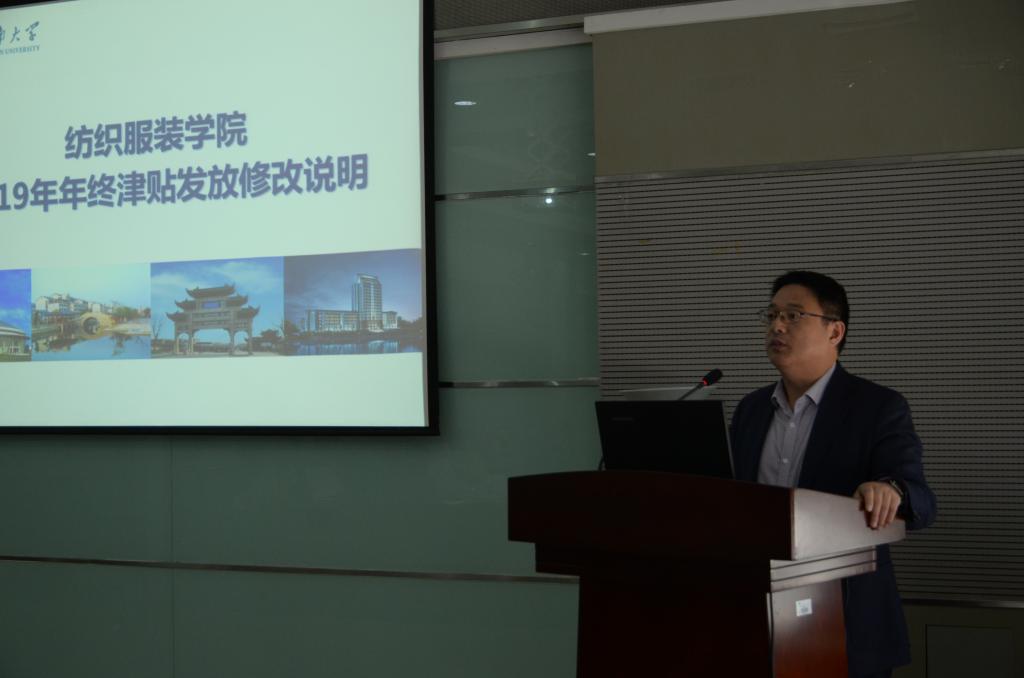 纺织服装学院2019年度岗位考核与校内工作津贴发放办法》(以下简称《津贴发放办法》)作了要点修订说明。他主要对《津贴发放办法》文件中今年新修订的内容,如新引进教师考核办法、重点学科方向与科学研究突破、科研团队建设与考核、指导研究生工作量核算、大型仪器设备与测试管理等方面进行了详细解读与说明。他对前期两轮征求意见反馈的问题,如评教制度、职称晋升政策、科研专项奖励、工作量核算等作了客观分析与解答,与会代表举手表决全票通过了《津贴发放办法》。大会还审议并表决通过了学院书面财务工作报告。