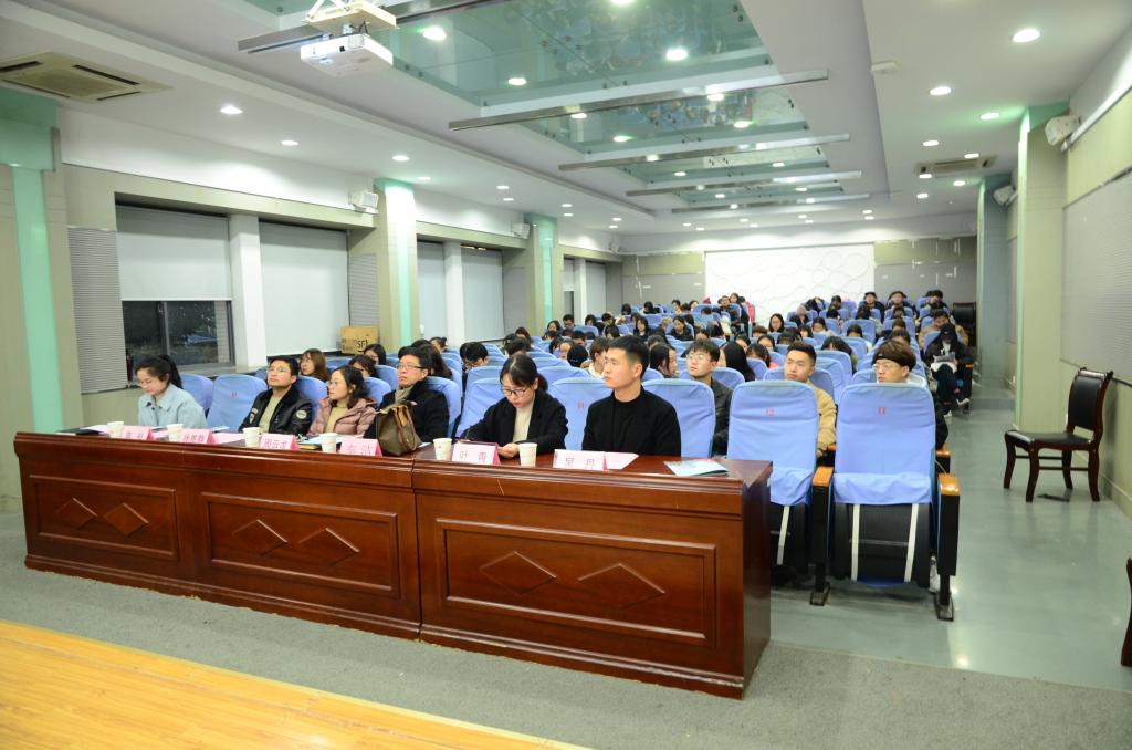 国交处学生交流科科长秦洁、院分团委副书记徐雅静及全体辅导员出席了此次会议。此外,到场的还有17、18级各班级学生代表及2018年度远翔奖学金全体获奖同学。会议由纺织服装学院国际交流分管辅导员马倩如主持。